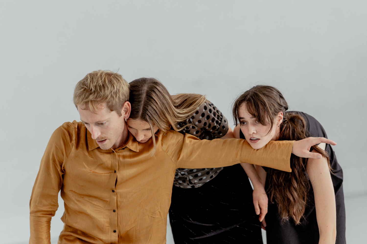 The trio format opens up to the syncopated and uncoordinated in a private space where there are limited possibilities for movements that seem appropriate. Instead, the imperfect becomes a separate idiom in Ingun Bjørnsgaard’s choreographic universe.